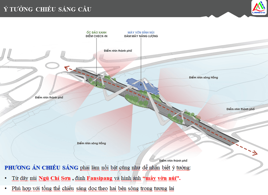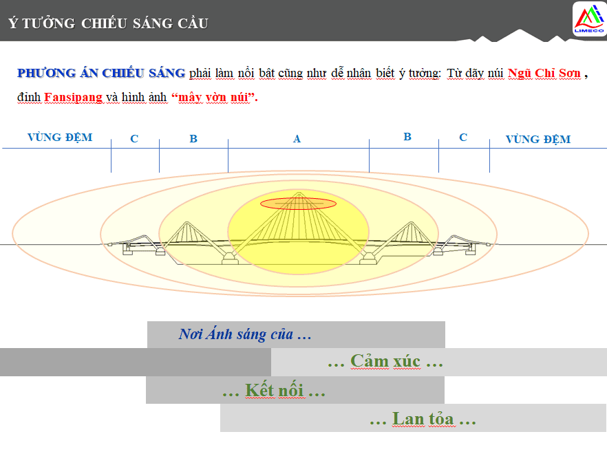 Phương án thiết kế chiếu sáng mỹ thuật là làm nổi bật cũng như dễ nhận biết ý tưởng: Từ dãy núi Ngũ Chỉ Sơn , đỉnh Fansipang