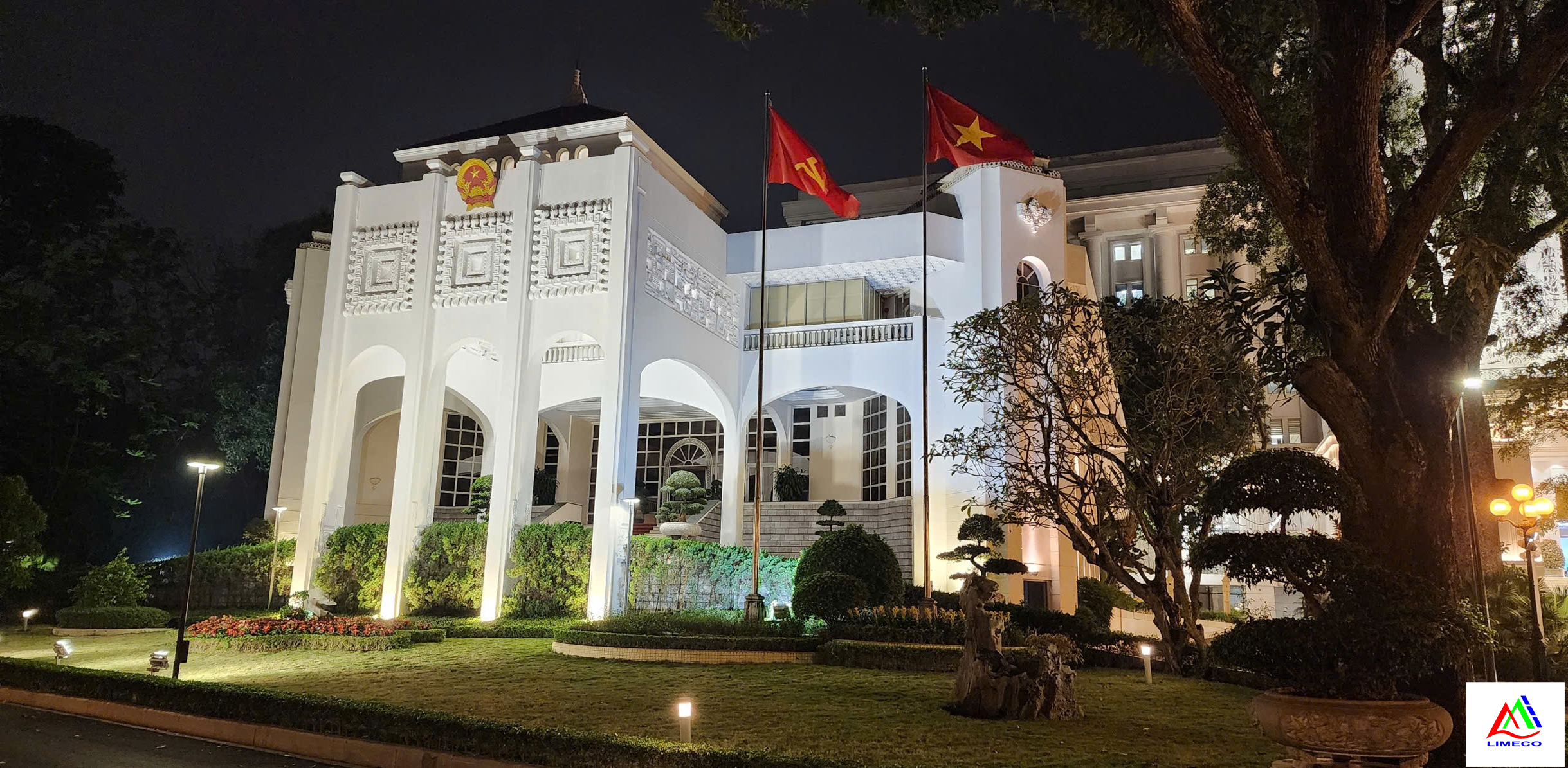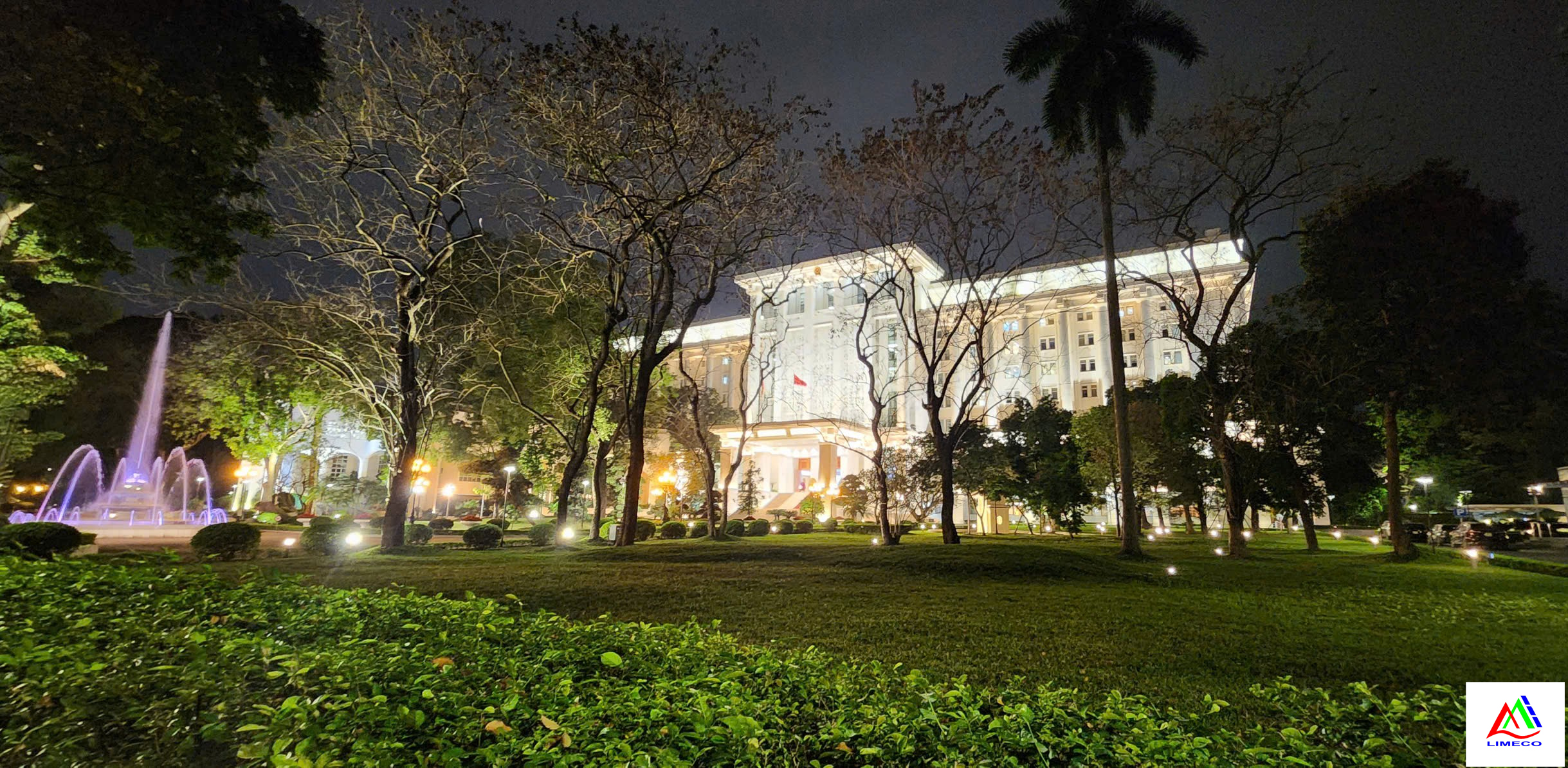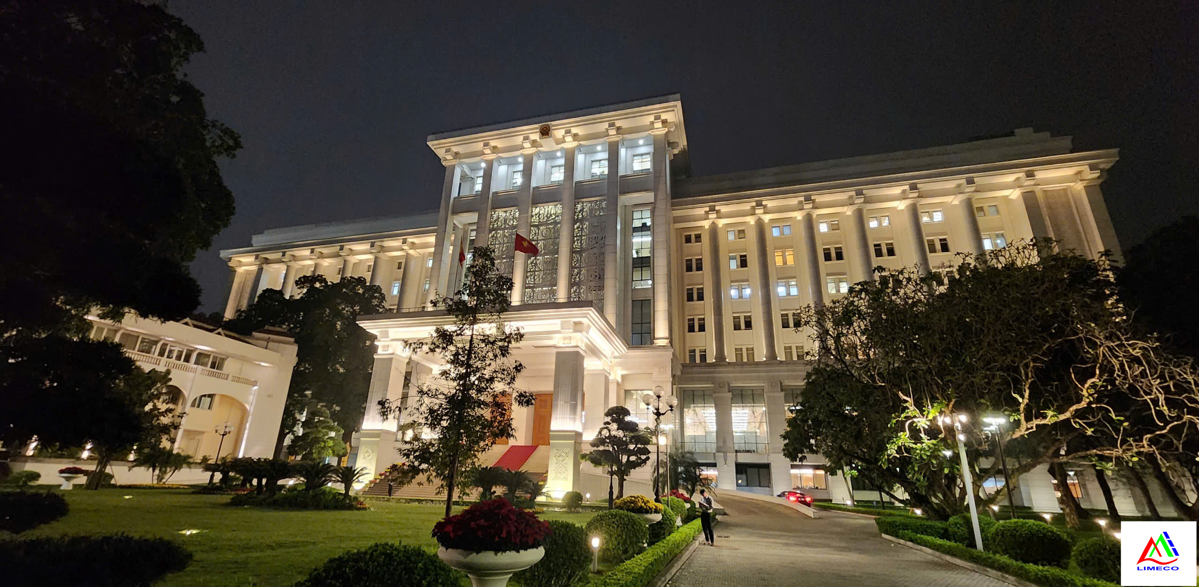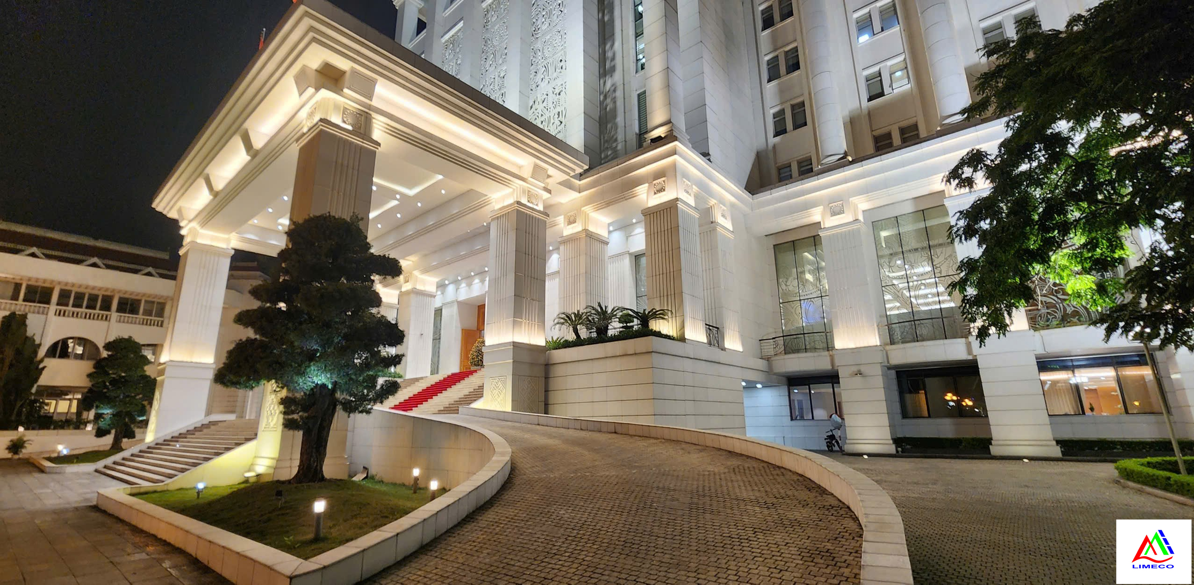 LIMECO thiết kế chiếu sáng mỹ thuật kiến trúc mặt đứng nhằm tôn vinh vẻ đẹp biểu tượng của tòa nhà và thiết kế chiếu sáng cảnh quan sân vườn, tạo nên không gian khuôn viên sang trọng, hài hòa và hiện đại
